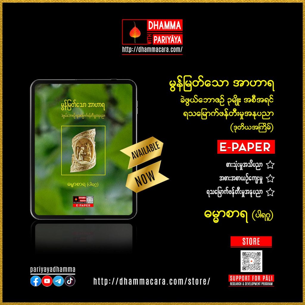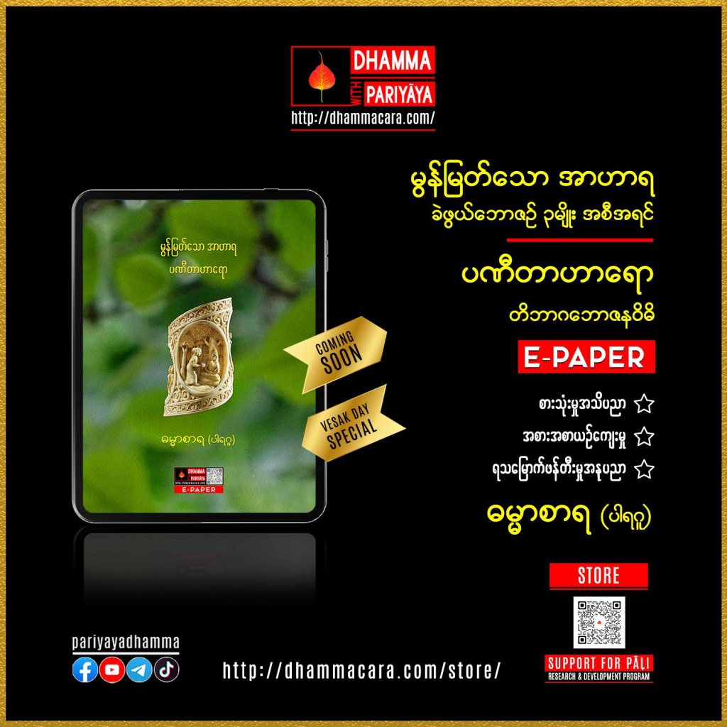 - Ebookမှာယူအားပေးခြင်းဖြင့် ပါဠိသုတေသနနှင့်ဖွံ့ဖြိုးရေးလုပ်ငန်းများကို ထောက်ပံ့ကူညီနိုင်ပါသည်။