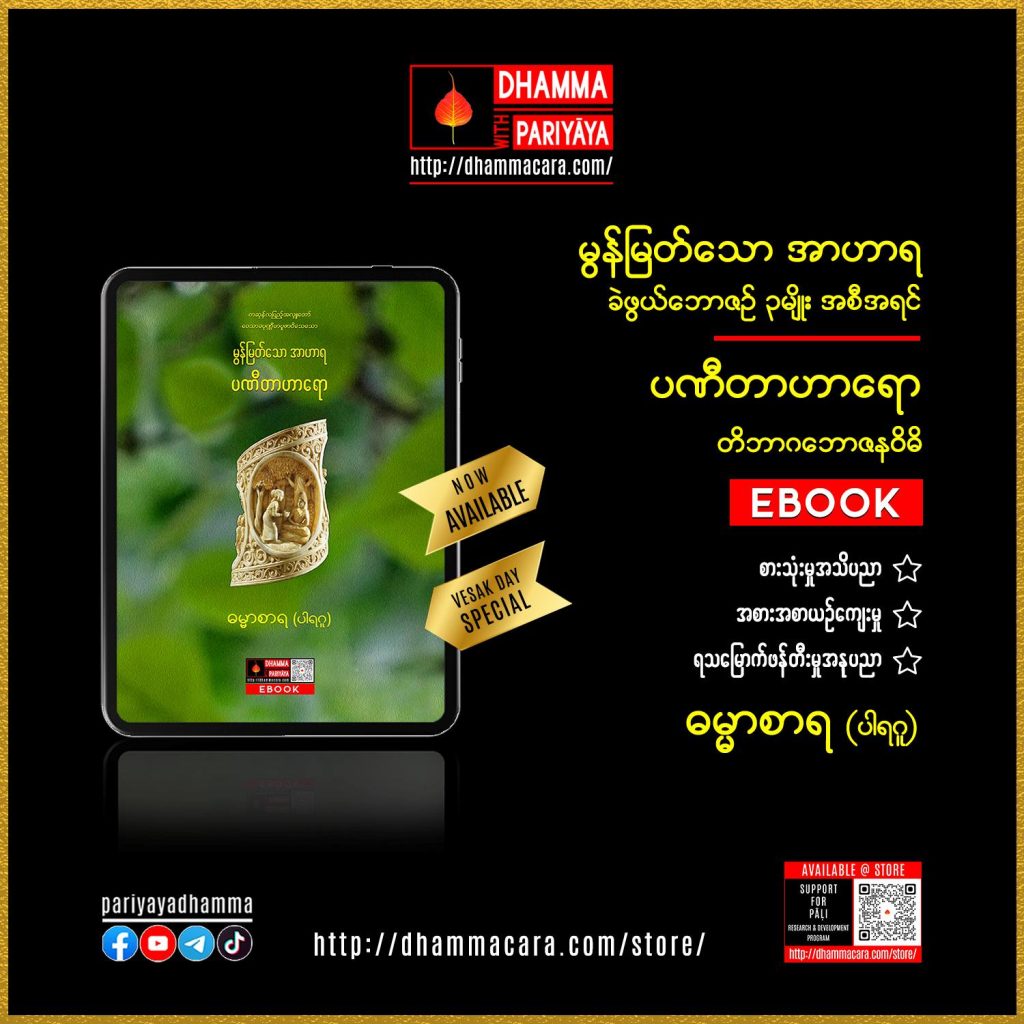 - Ebookမှာယူအားပေးခြင်းဖြင့် ပါဠိသုတေသနနှင့်ဖွံ့ဖြိုးရေးလုပ်ငန်းများကို ထောက်ပံ့ကူညီနိုင်ပါသည်။